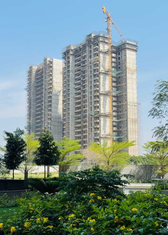 Project Highlights: 2 luxury towers, 425 units; 2 BHK (1,200–1,500 sq. ft.) & 3 BHK (1,800–2,200 sq. ft.); three-side open plot with wide road access.